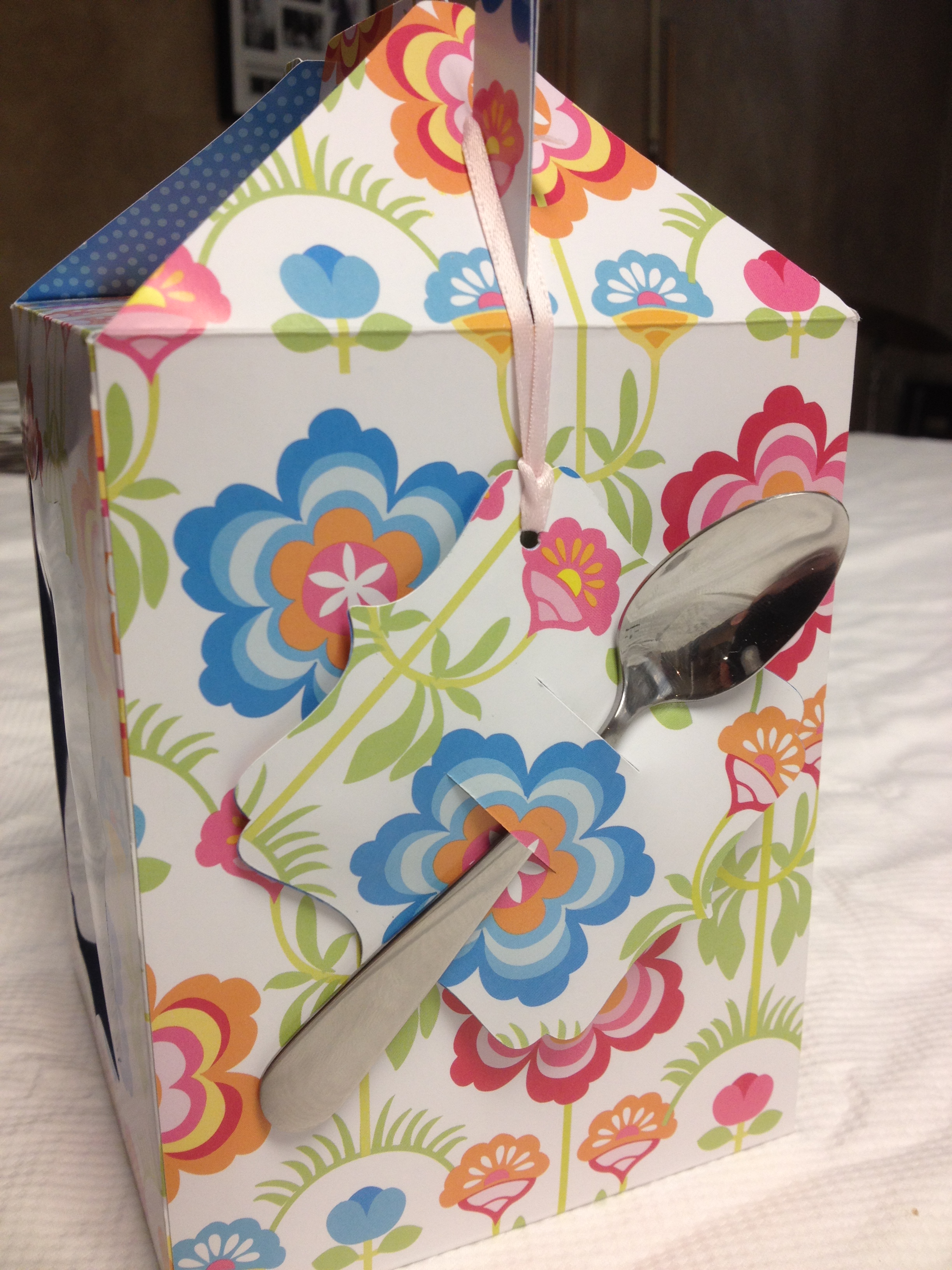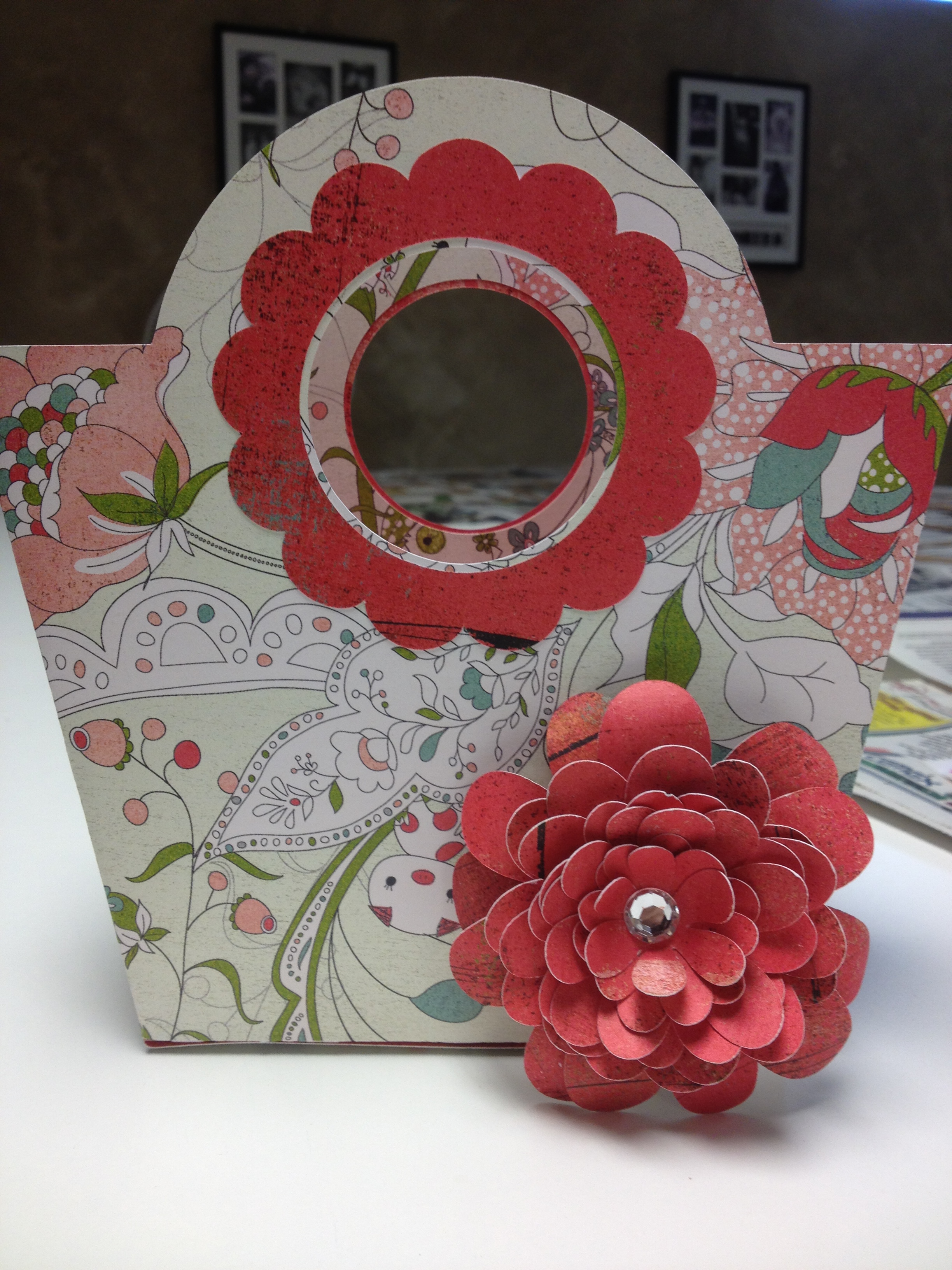 The ladies were also given a tutorial on how to create ribbon roses. The instructions and materials were included in this adorable tote made from paper.