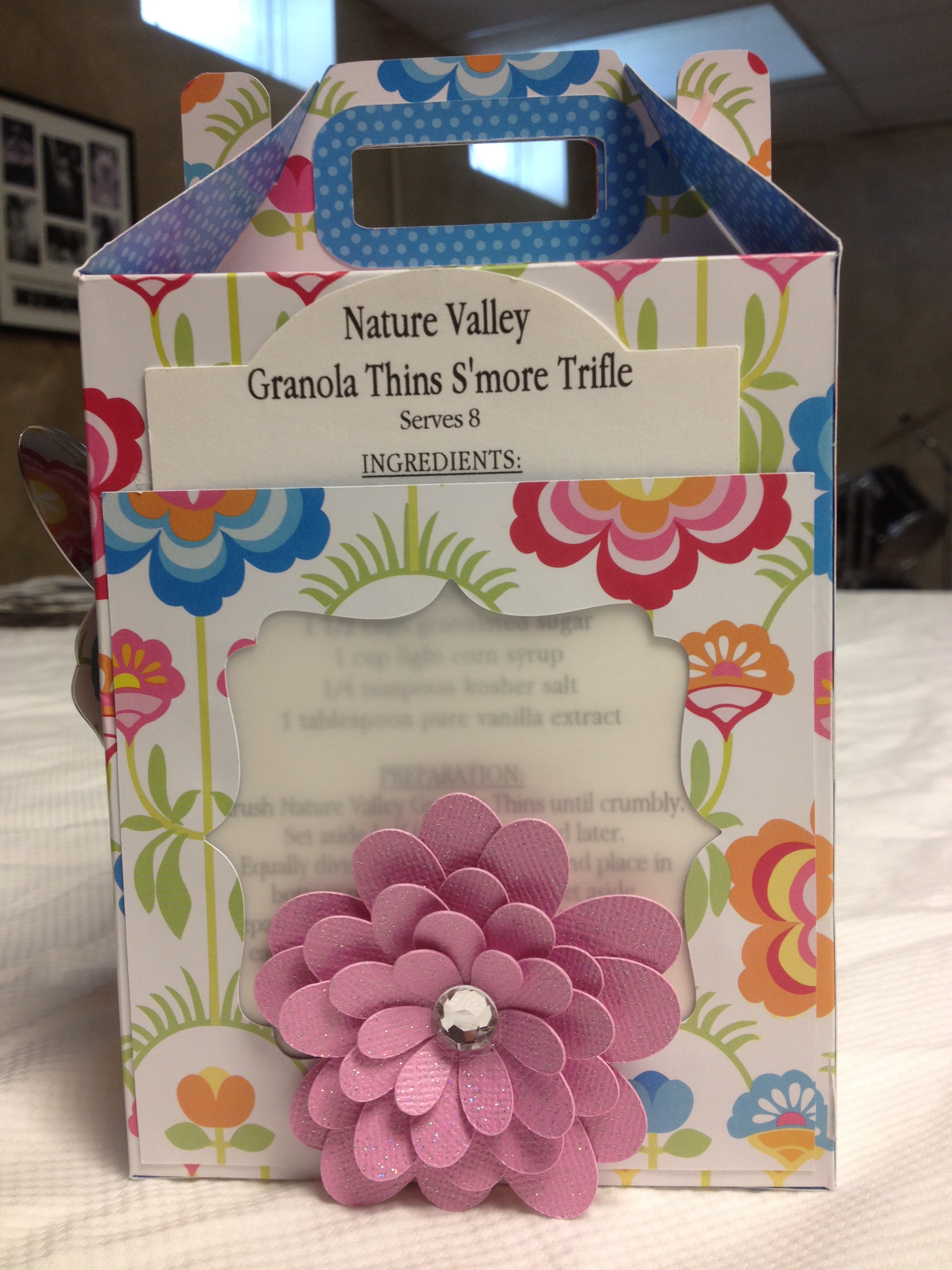 Each guest also received a ready-to-bake S’more dessert inside this custom designed gable box. (My coffee cup was used for demonstration purposes here.)