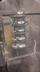 Erin created the “spine” theme and without looking like it was Halloween or “cartoonish”, an elegant color scheme and materials were used.  I designed a spine pattern for the table cloth, uploaded it to Spoonflower and had the custom fabric printed.  Erin found the clear acrylic box to hold the gifts for the attendees.  Tea light holders were stacked inside and looked like a spine!  So cool!  The recipient also received a gift card for chiropractic services from Dr. Borges.  But we couldn’t just use a standard gift card, oh no, too blah!  I cut acrylic and sandwiched the gift certificate in-between the layers to coordinate with the clear & silver used throughout the table.