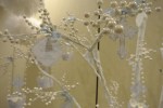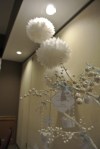 Karen wanted to create an elegant room without being so elegant it became uncomfortable. I think we accomplished just that. The combination of natural burlap and white, a little glitter and pearls, and tree branches and paper details all worked together. Shabby Elegance!