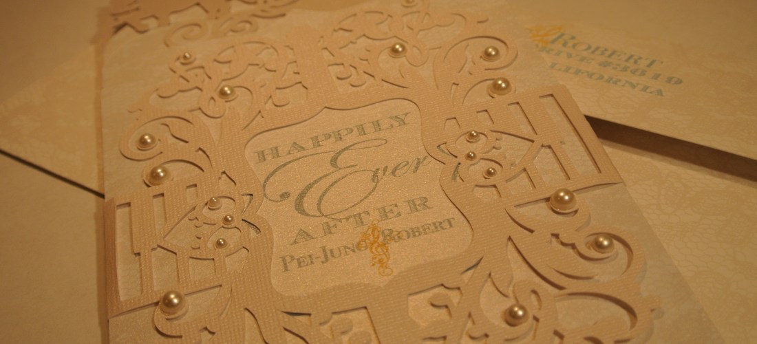 The custom belly band was made with things important to the couple; music and the ocean. I incorporated the two to make an elegant piece that would hold the invitation all together. Colors, patterns, and lots of details went into this unique invitation. I just LOVE love!