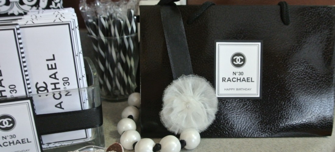 My dear friend, Karen, asked me to help her put together a surprise 30th birthday party for her daughter, Rachael. Rachael was coming into town and we had a small window of time to get this one completed – 12 days to be exact. The Chanel theme and simplistic color palette made this one move along easily as we “pinned” ideas and chatted constantly to be sure all the bases were covered and no detail missed. We think it turned out lovely and has become one of my favorite events to date. Rachael loved it and was completely surprised! Well done, Karen! You’ve got “Mom of the Year” in the bag!